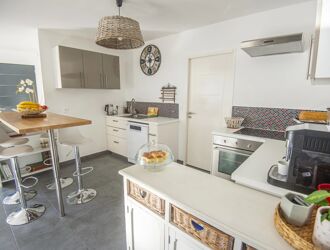 Profitez d’une grande pièce de vie baignée de lumière, grâce à sa double exposition Est et Sud, offrant un espace convivial et chaleureux pour toute la famille. La cuisine est équipée de plaques à induction, d'une hotte, d'un four traditionnel, d'un lave vaisselle et de meubles hauts et bas.