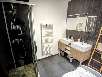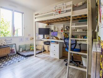 La suite parentale est un véritable refuge, intime et douillet, avec sa salle d’eau privée et son dressing astucieusement aménagé : tout est pensé pour votre confort au quotidien. Les deux autres chambres, accueillantes et lumineuses, disposent chacune de placards intégrés et se partagent une belle salle de bains familiale avec baignoire et douche ainsi qu'une double vasque et un wc, idéale pour les matins en douceur.