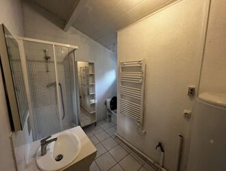 La salle d'eau (douche, vasque, WC) et l'espace cuisine constituent une excellente base à personnaliser pour pousser à son paroxysme cet esprit "maison d'hôtes" chaleureux.